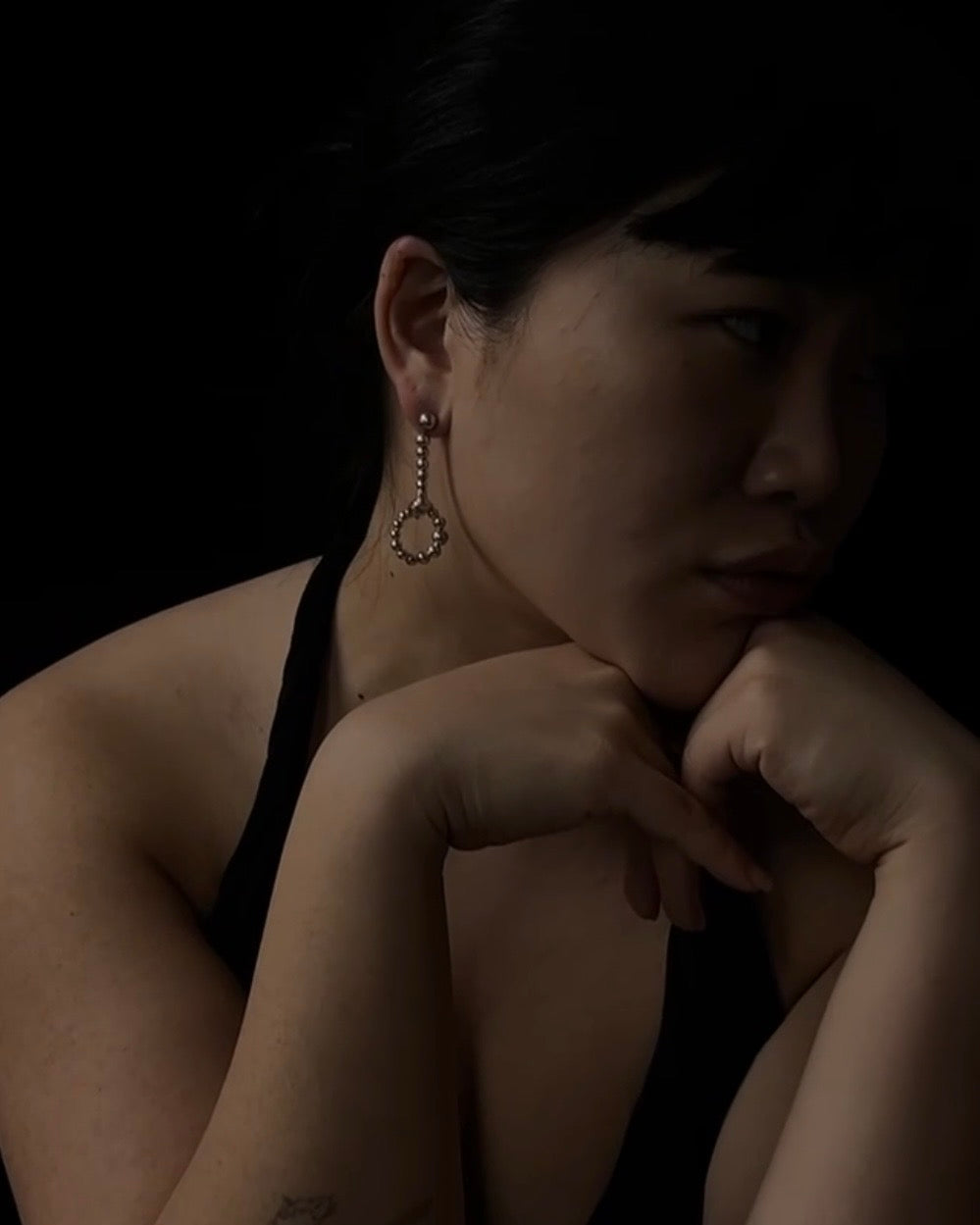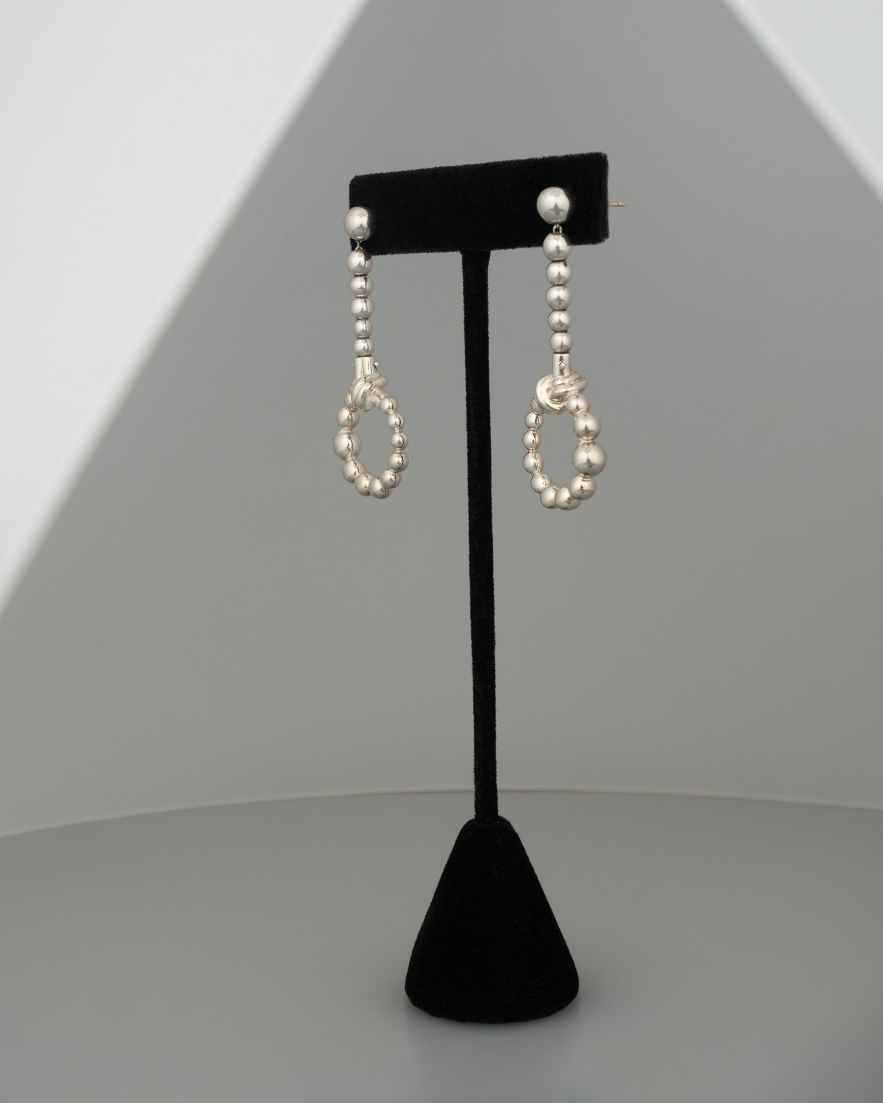 a spinning pair of solid sterling orb beaded looped 'knot' drop sways with 14k gold posts. TANE for the stamp collectors.
