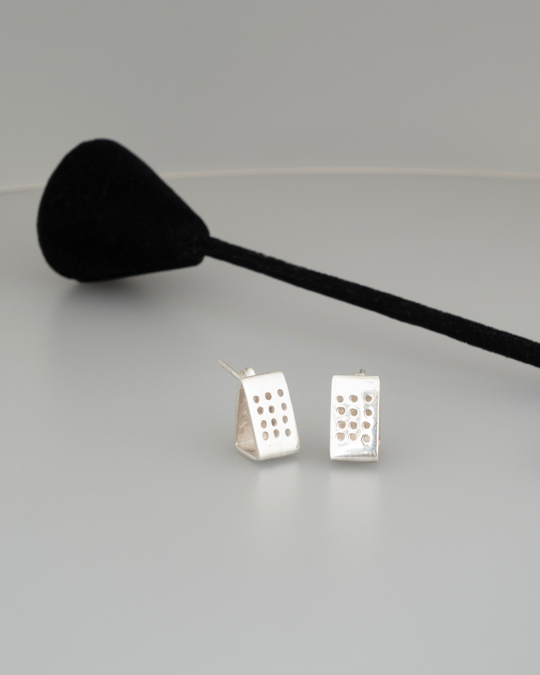 a pair of featherweight hand forged solid sterling silver hole punched wedge studs.