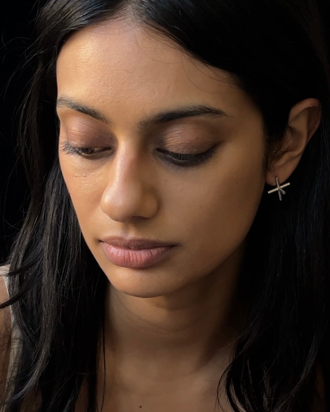 a post modern pair of clean line round rod sterling silver 'jacks' studs.