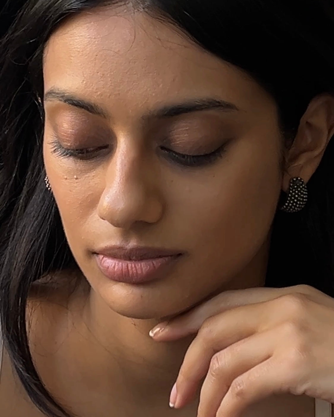 a postmodern brutalist mannered sterling silver pair of drip textured half hoop earrings with intentional patina.