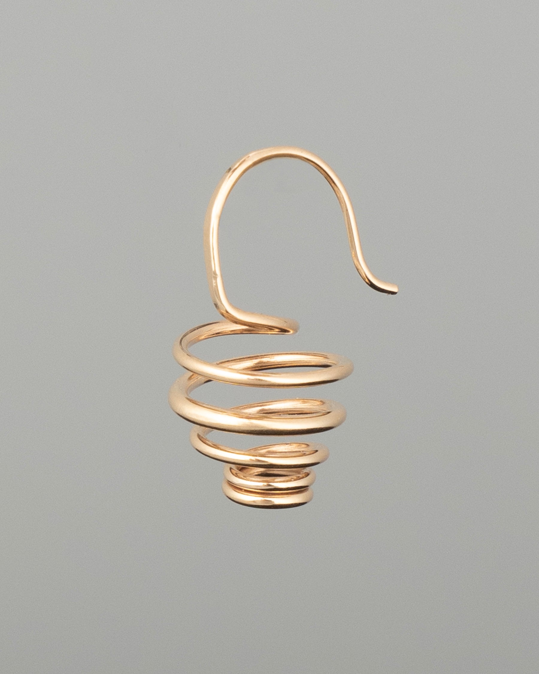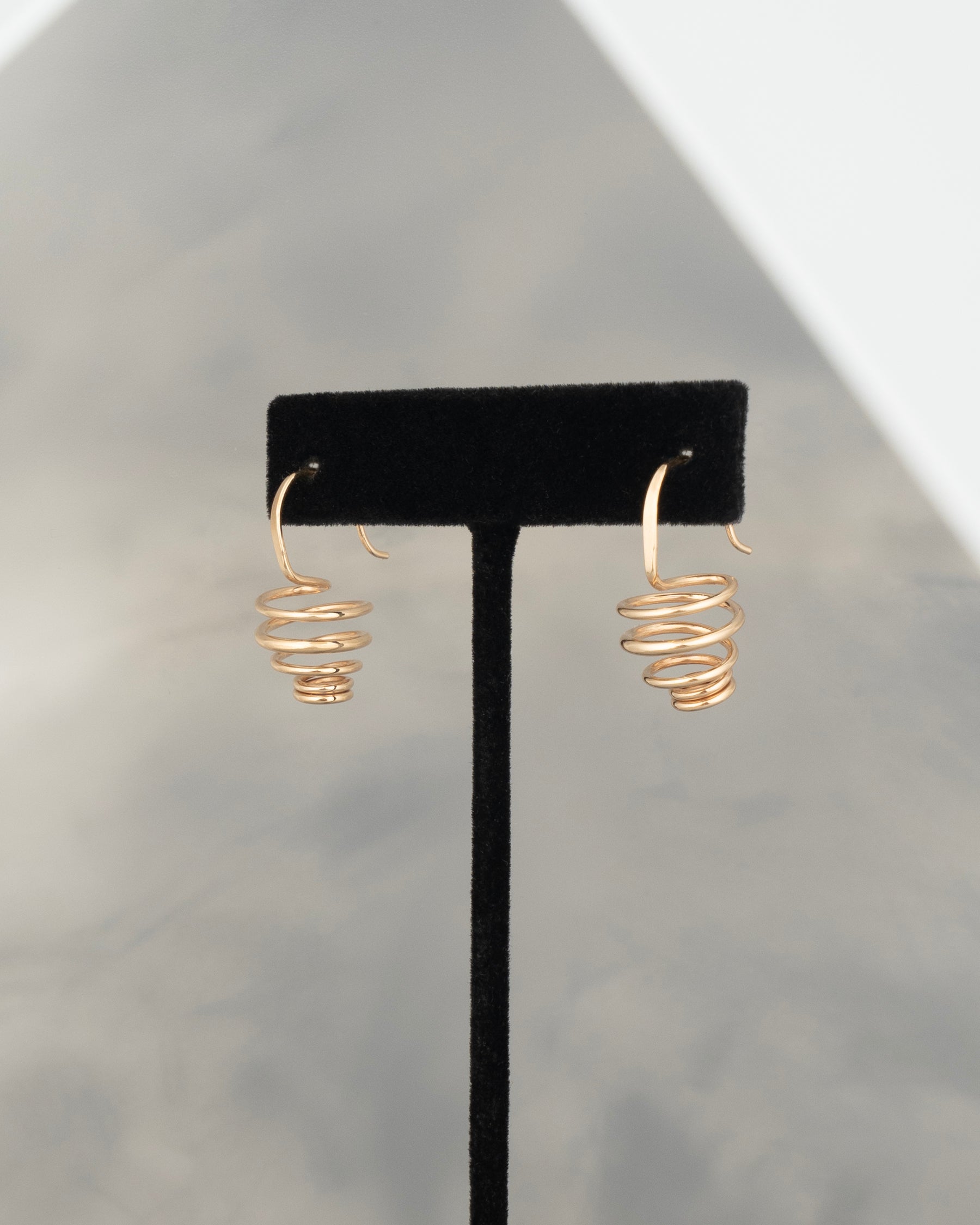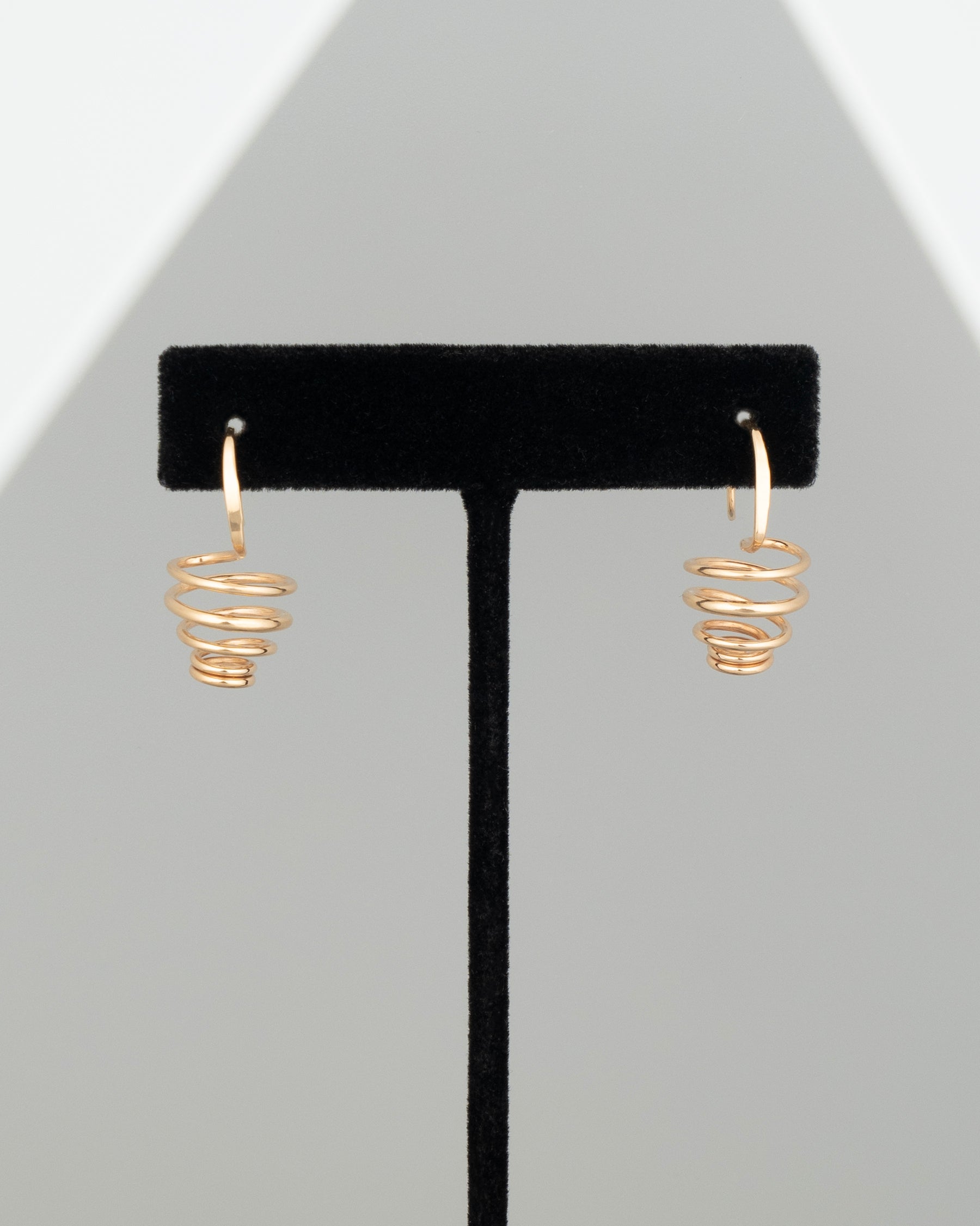 a pair of 1970s solid 14k expressive spiral earrings - forged in round wire with a french fish hook backs. ED LEVIN for the stamp collectors.