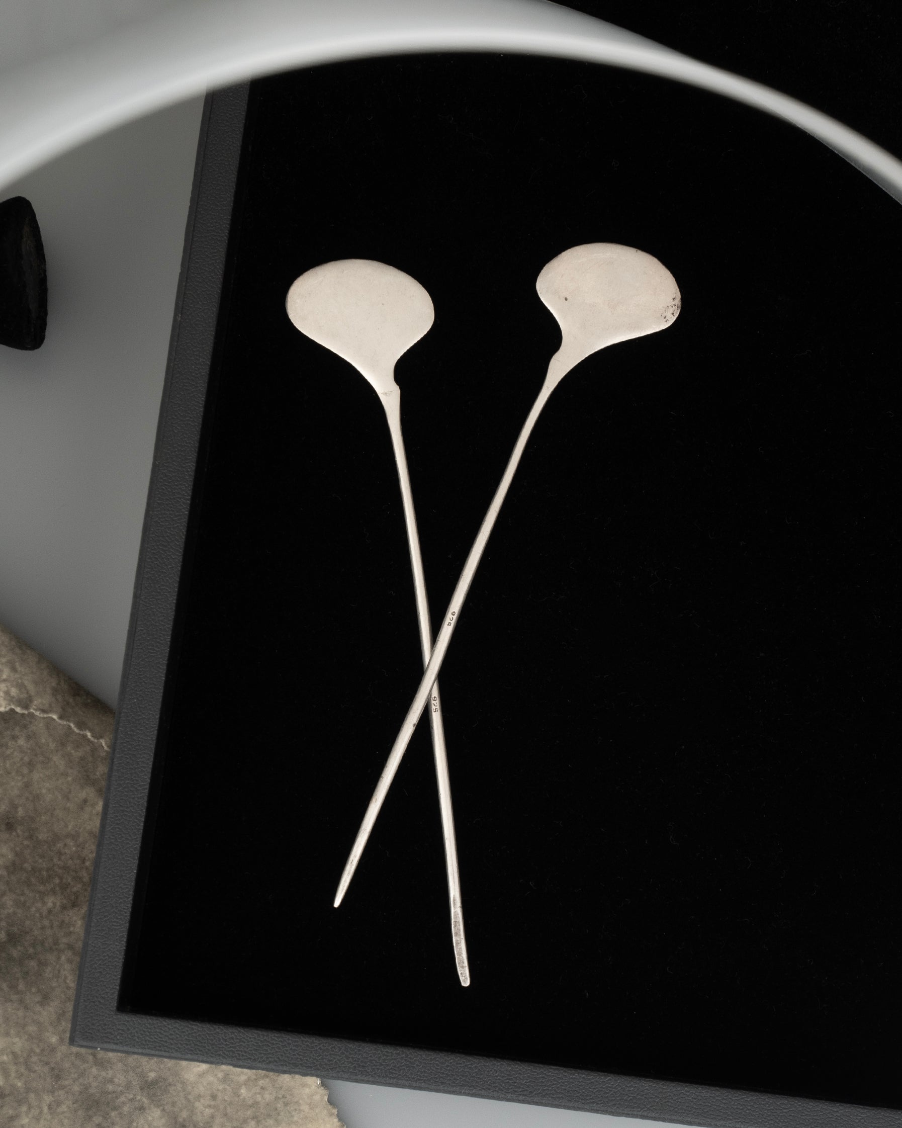 a solid sterling pair of hair pins - crafted as minimalist ginko leaf.