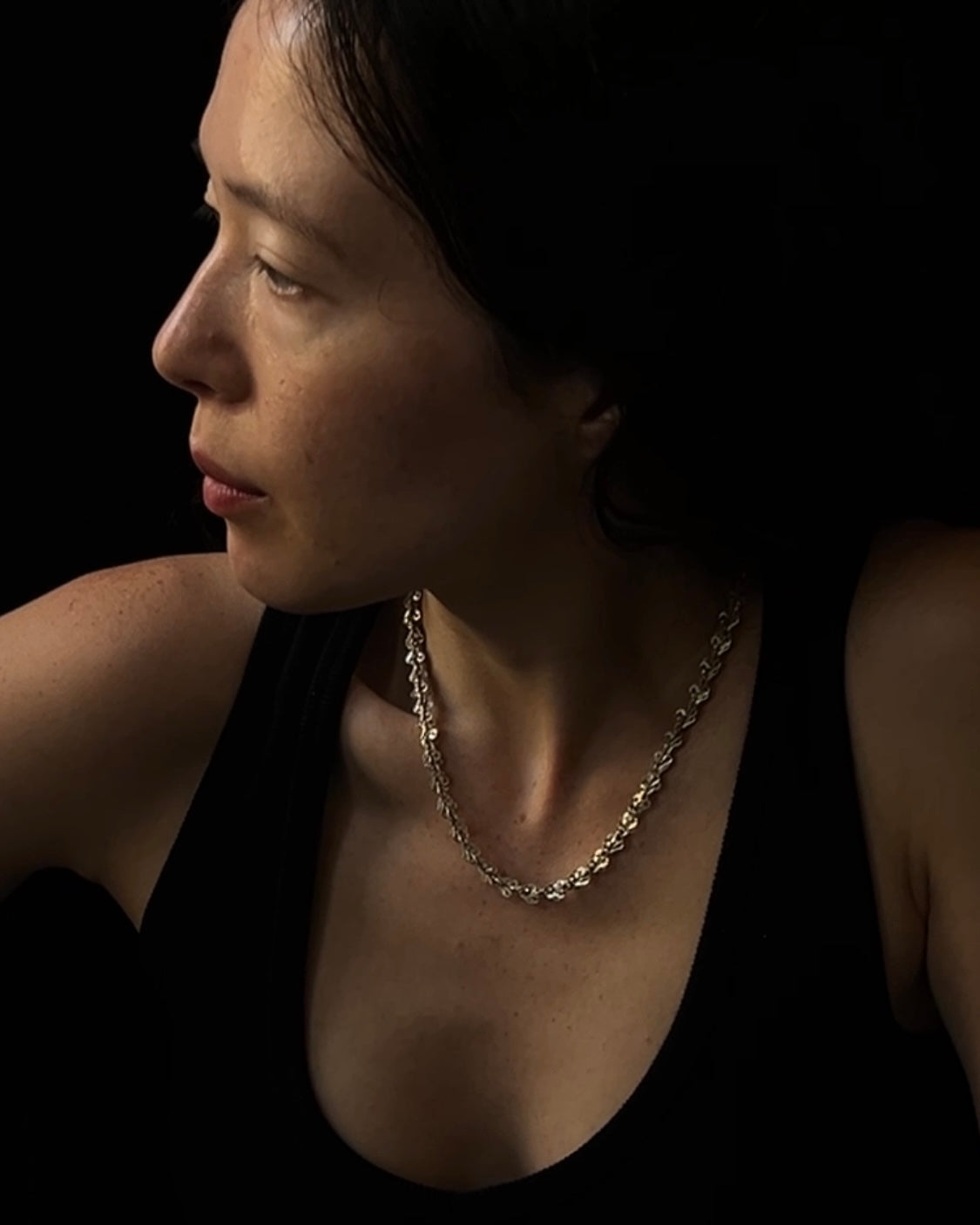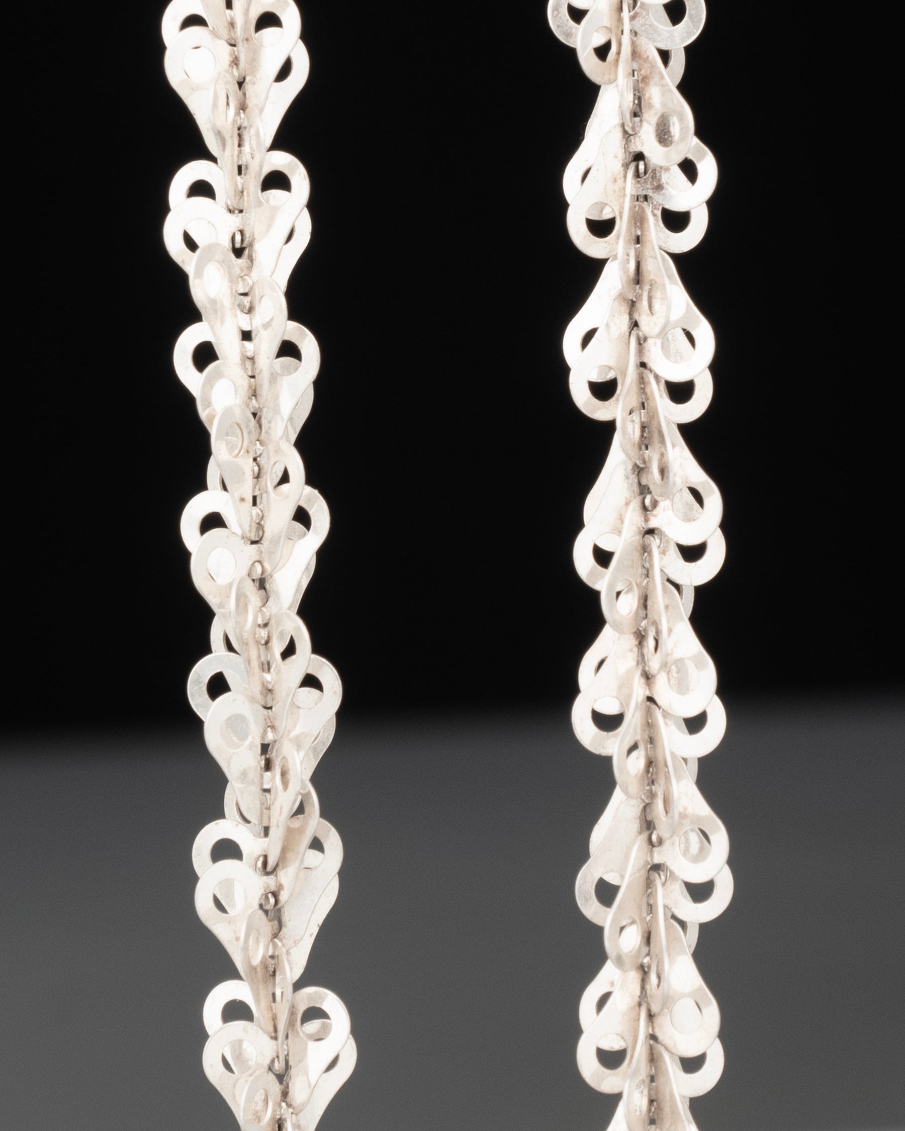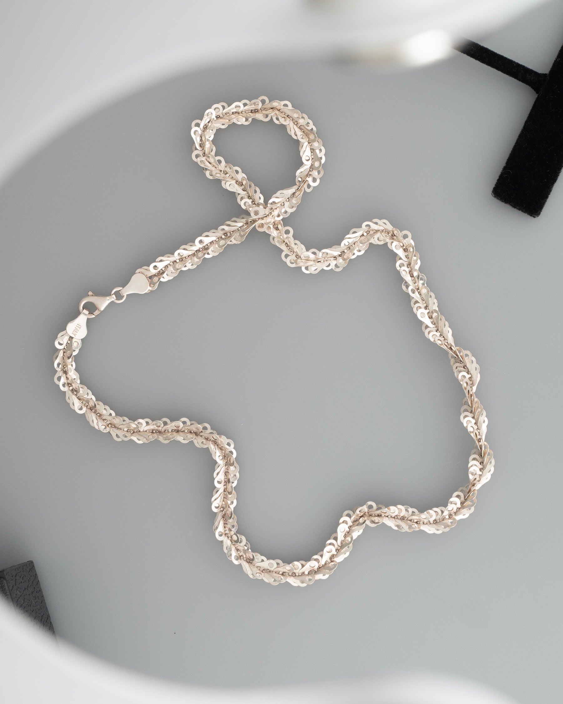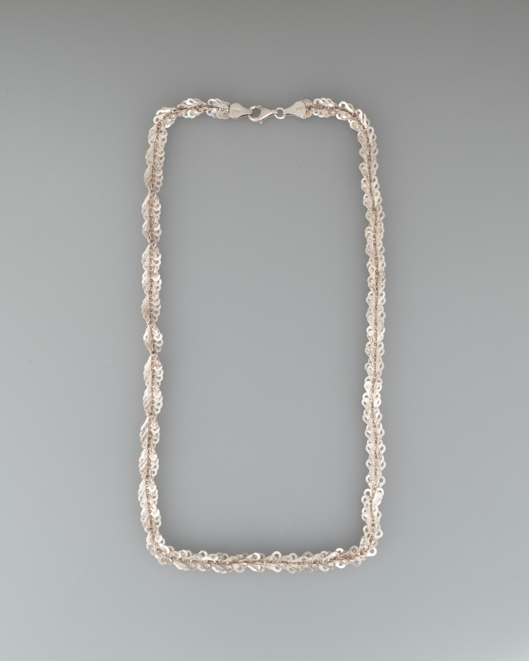 a post modern Italian sterling sheet die cut wind up link stack chain - highly polished, featherweight shimmer.