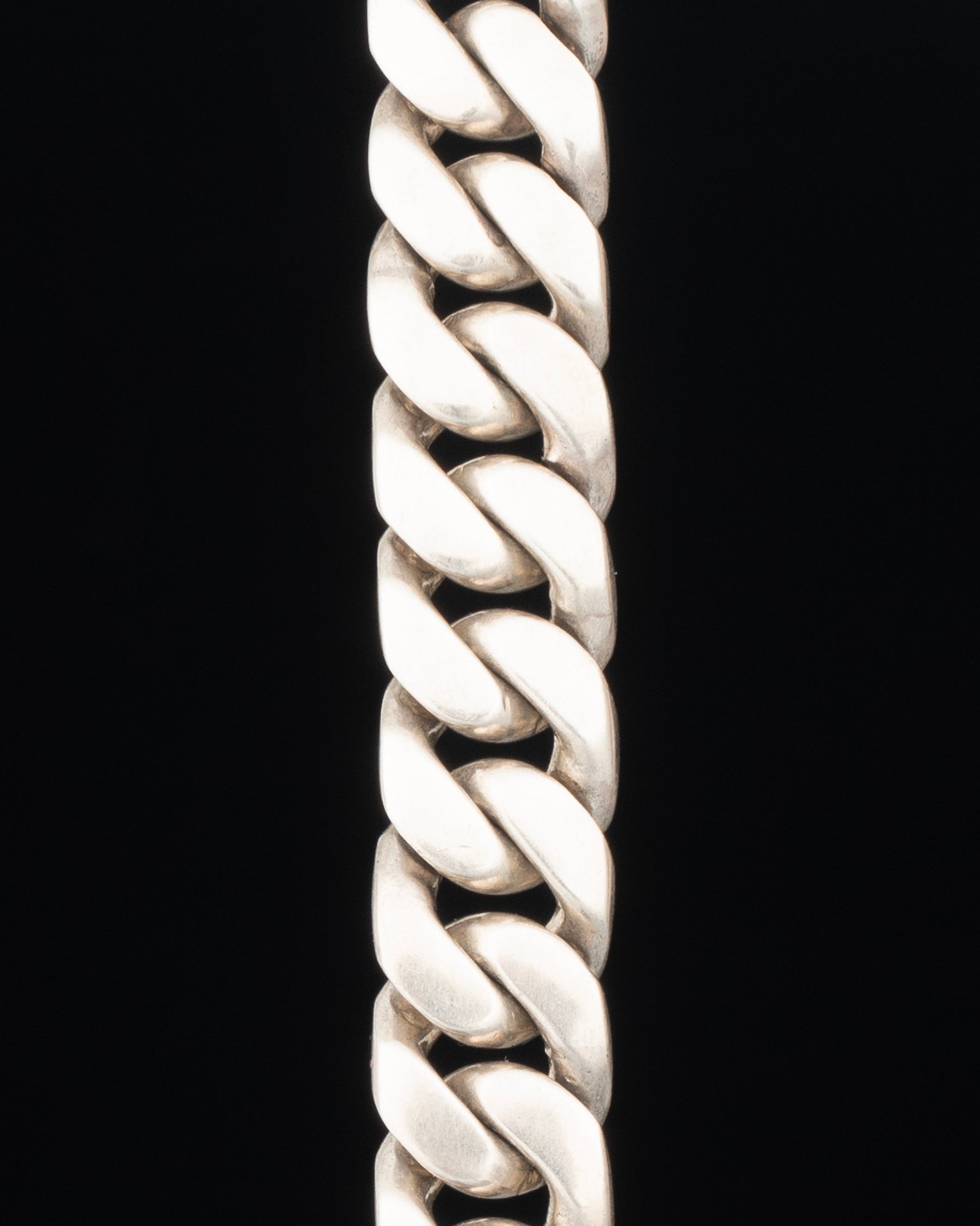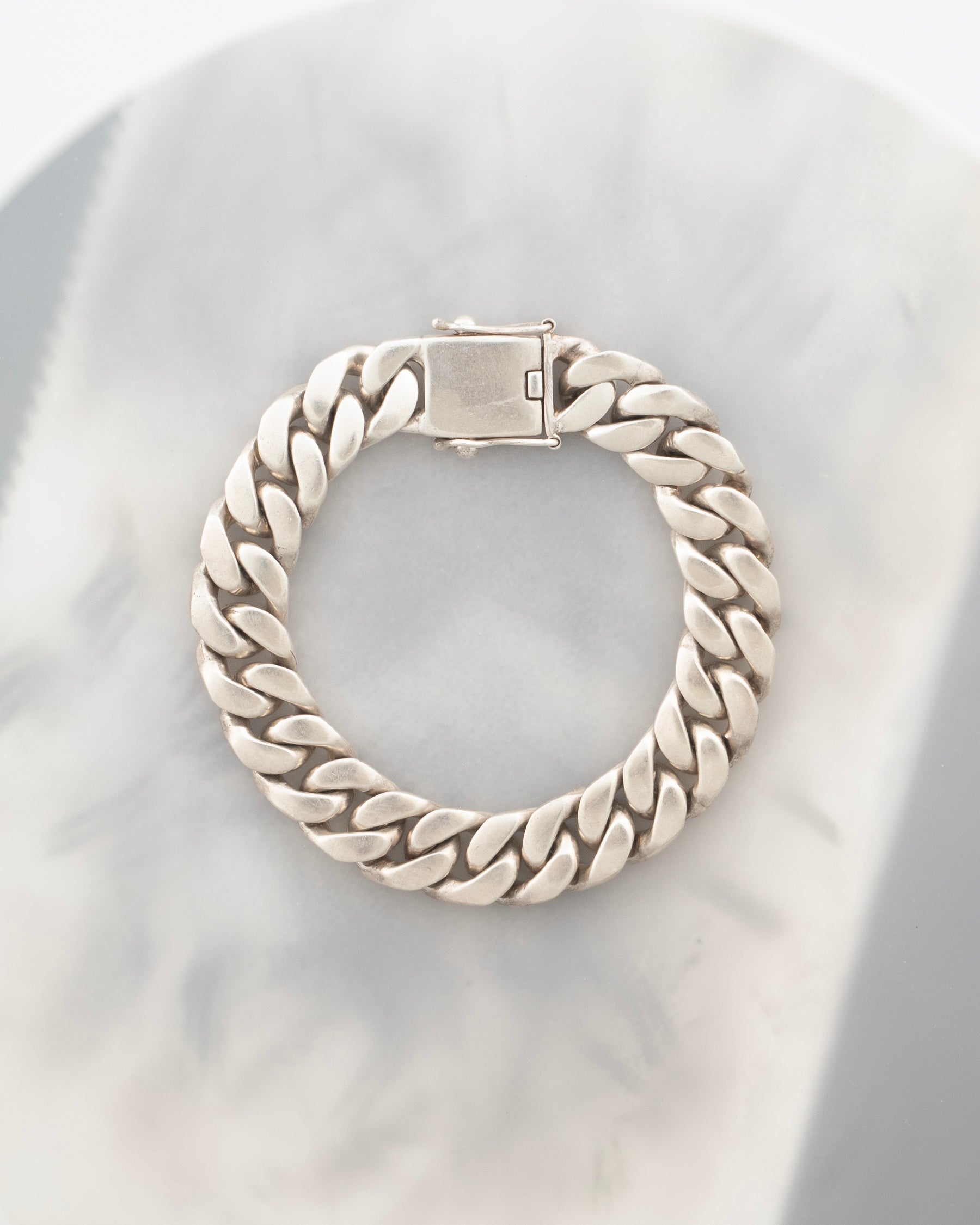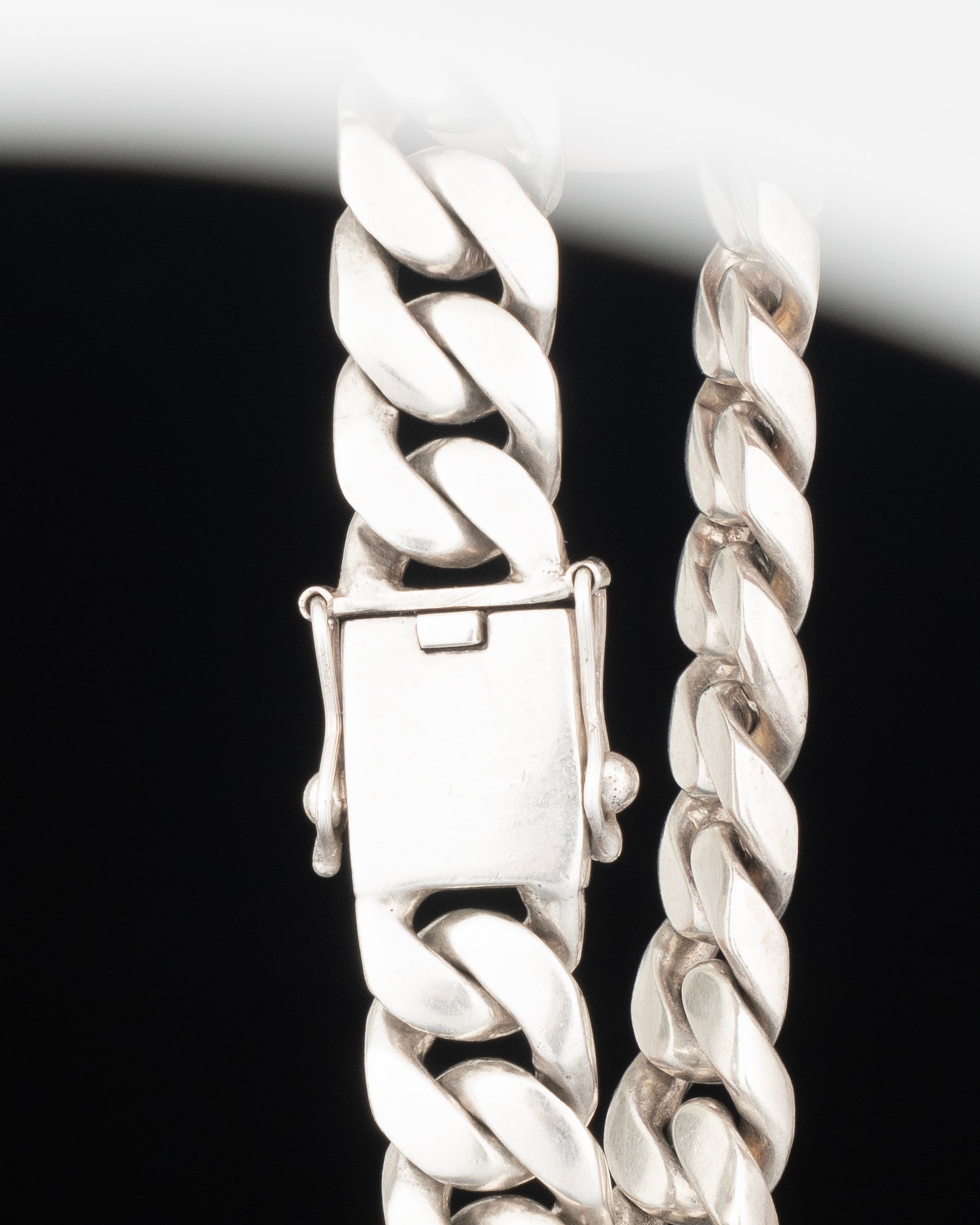 a substantial and weighty curb chain bracelet with double safety catching clean line box clasp closure.